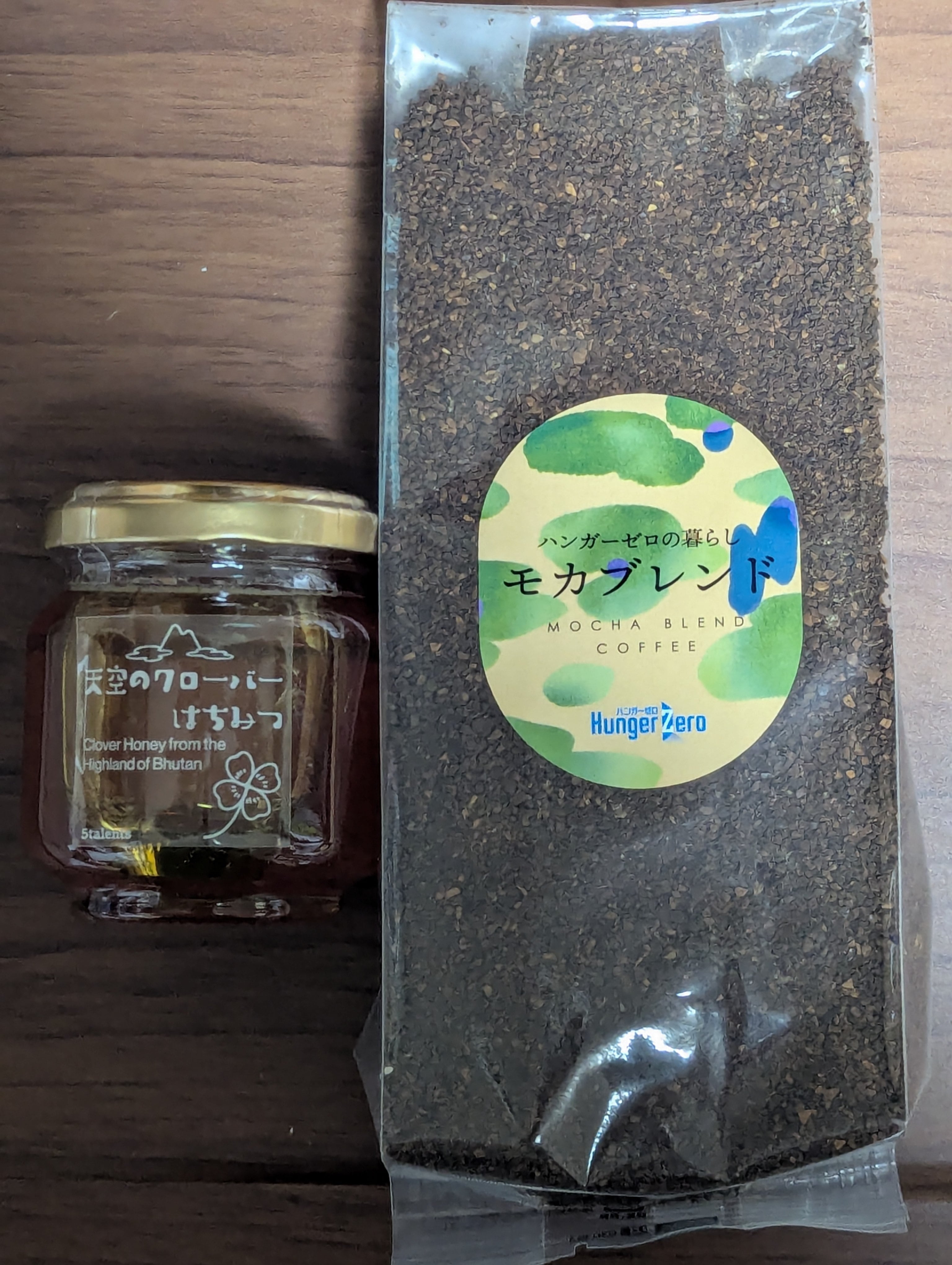 内容量:ハンガーゼロコーヒー 200g、ブータン蜂蜜 120g